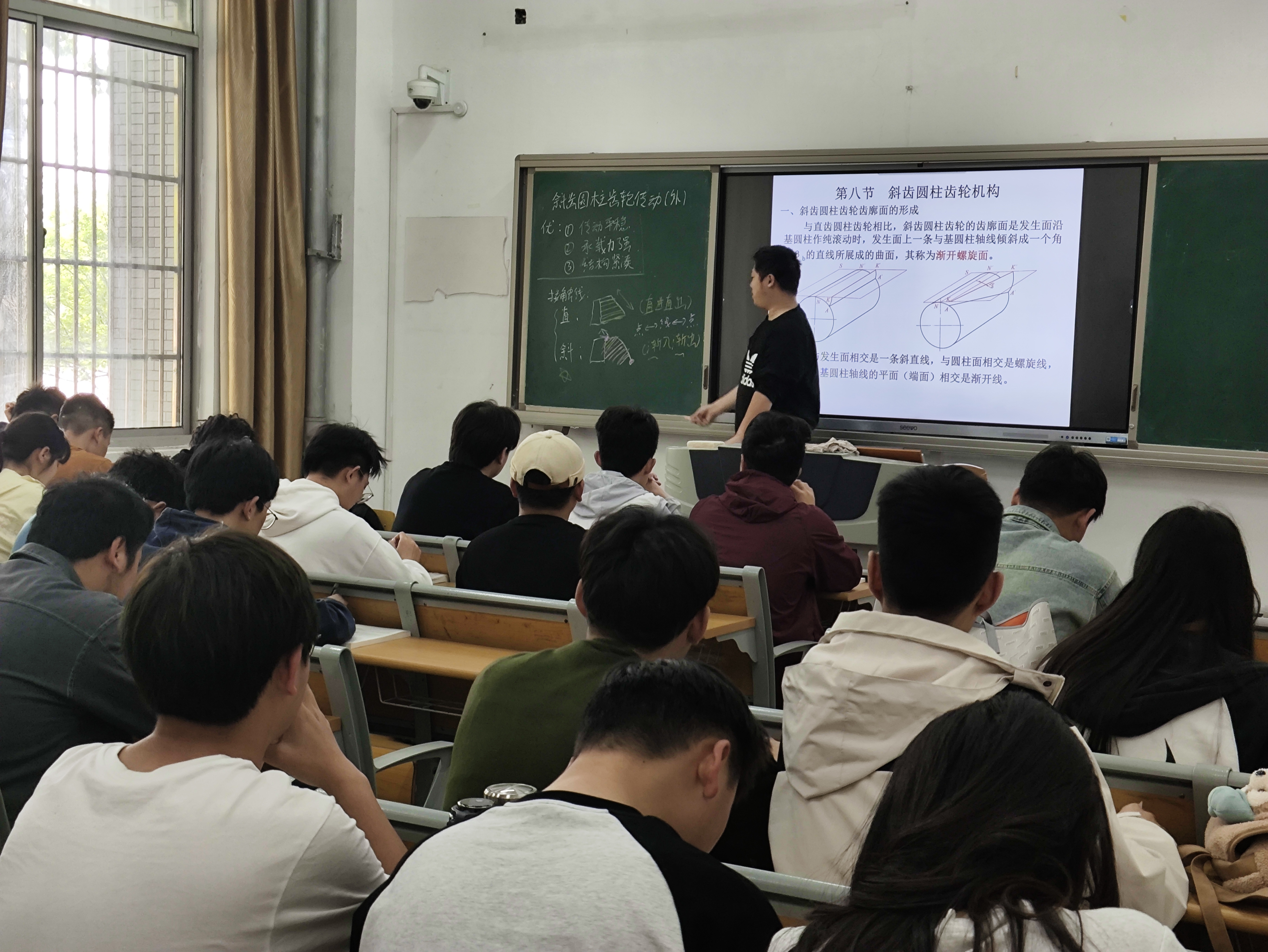 彭诚老师进行教学公开课展示活动,所授课程是《机械原理与设计》,充分运用多种教学手段以及多媒体,制作了质量较高的PPT,将知识点和课程理念渗透到教学环节中,适时抛出问题,引导学生深入思考,发挥教师主导作用,激发学生主动参与学习。在教学中,教学重点突出,难点处理得当,老师表达通俗易懂,逻辑严密,板书书写工整,内容丰富,取得了较好的教学效果,起到了良好的示范作用。