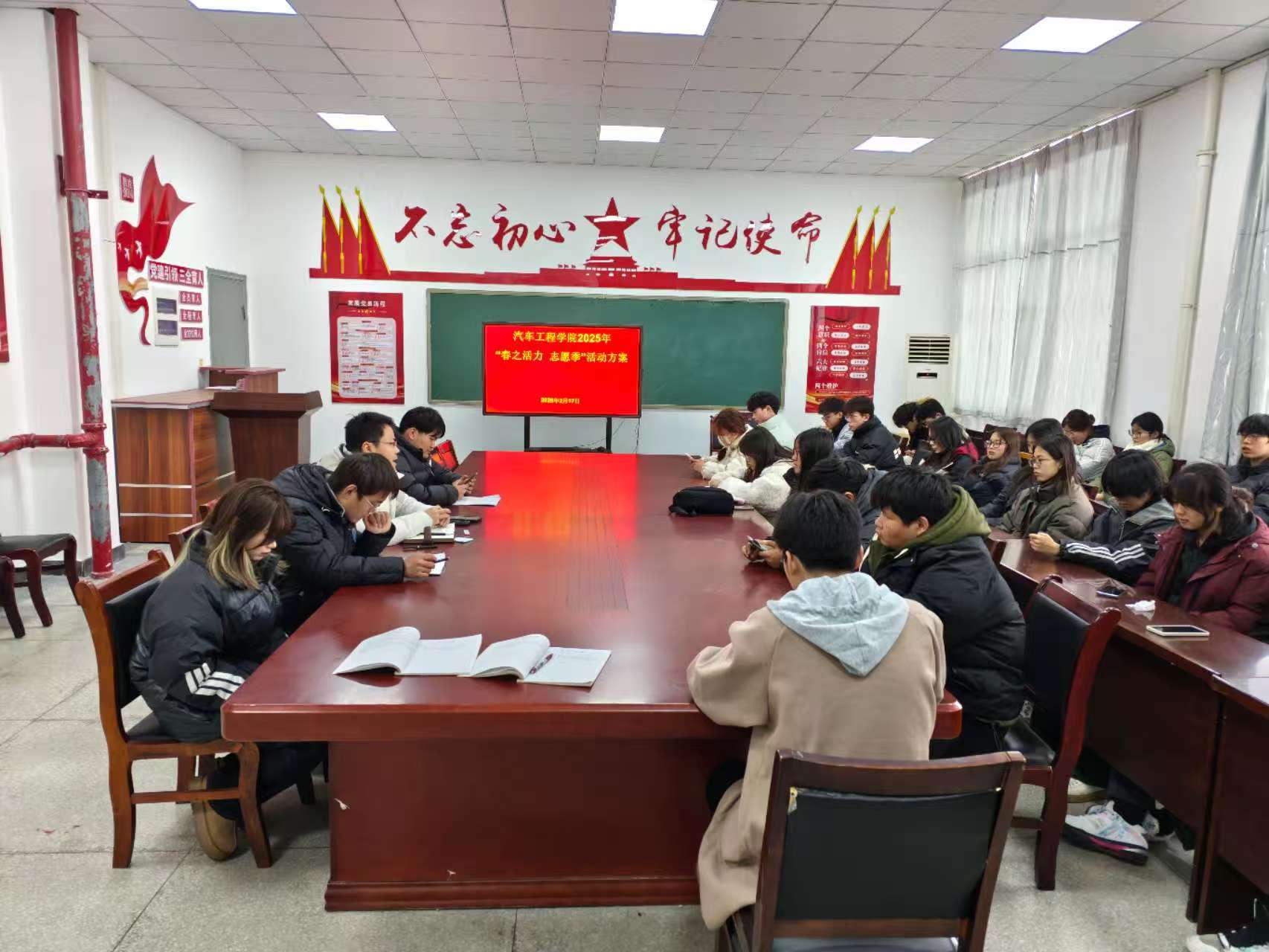 为学习宣传贯彻党的二十大精神,进一步推进新时代文明实践工作,大力弘扬“奉献、友爱、互助、进步”的志愿精神,亚洲精品国产团总支于2月17日下午5点在汽车楼405召开“2025春之活力志愿季”活动筹备会议,我院团总支书记毛炜、院学生会主席、学院各社团负责人参加此次会议。