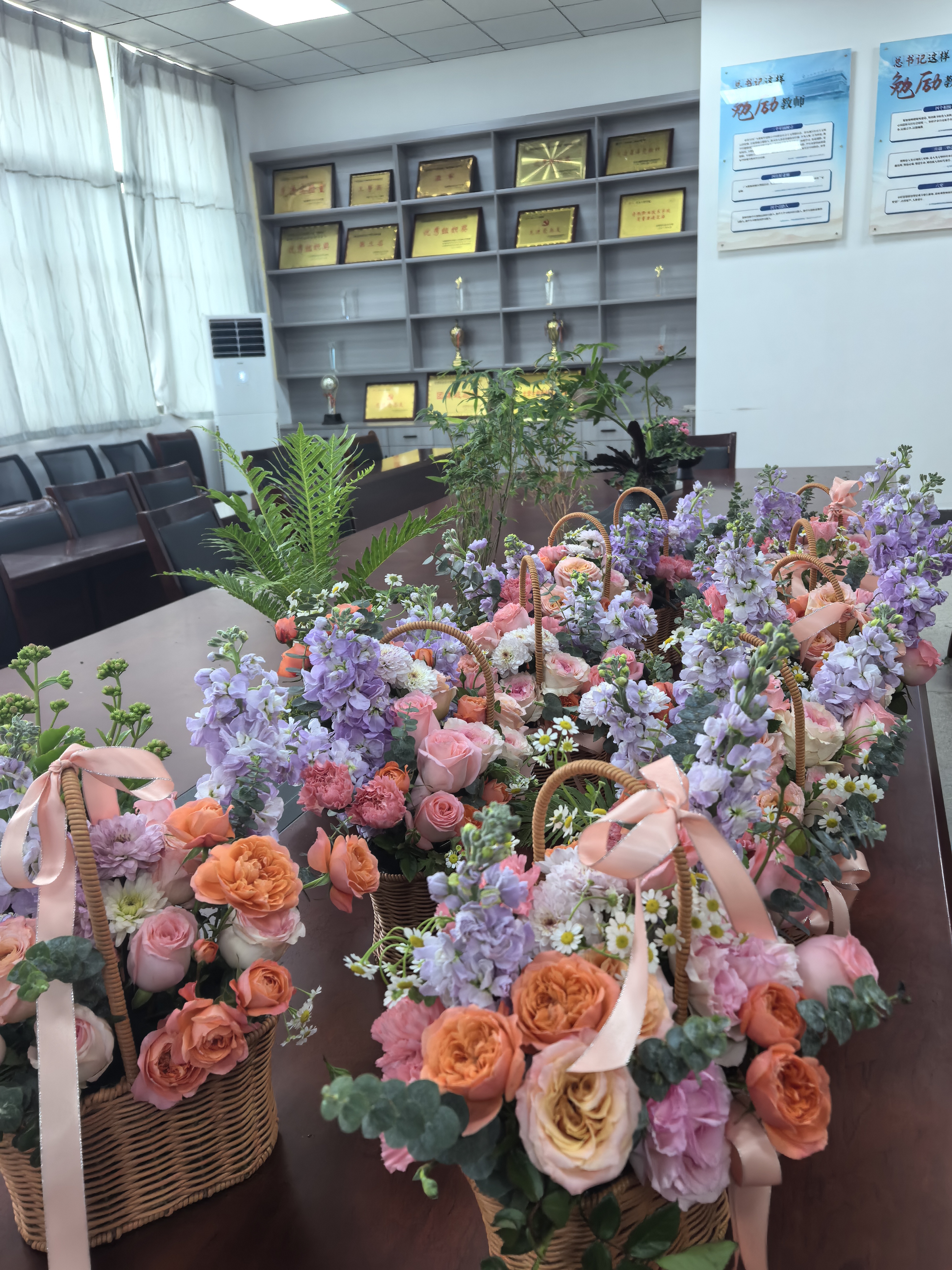 参与活动的女教职工们热情高涨,她们构思,修剪,扦插,现场气氛轻松而活跃。炽热浪漫的玫瑰,纯洁美好的康乃馨,素雅温暖的满天星……她们将一朵朵鲜花巧妙组合,创作出一件件独具匠心的花艺作品。活动期间,大家还围绕插花艺术、女性成长等话题进行了深入的交流与分享,增进了彼此之间的了解和友谊。