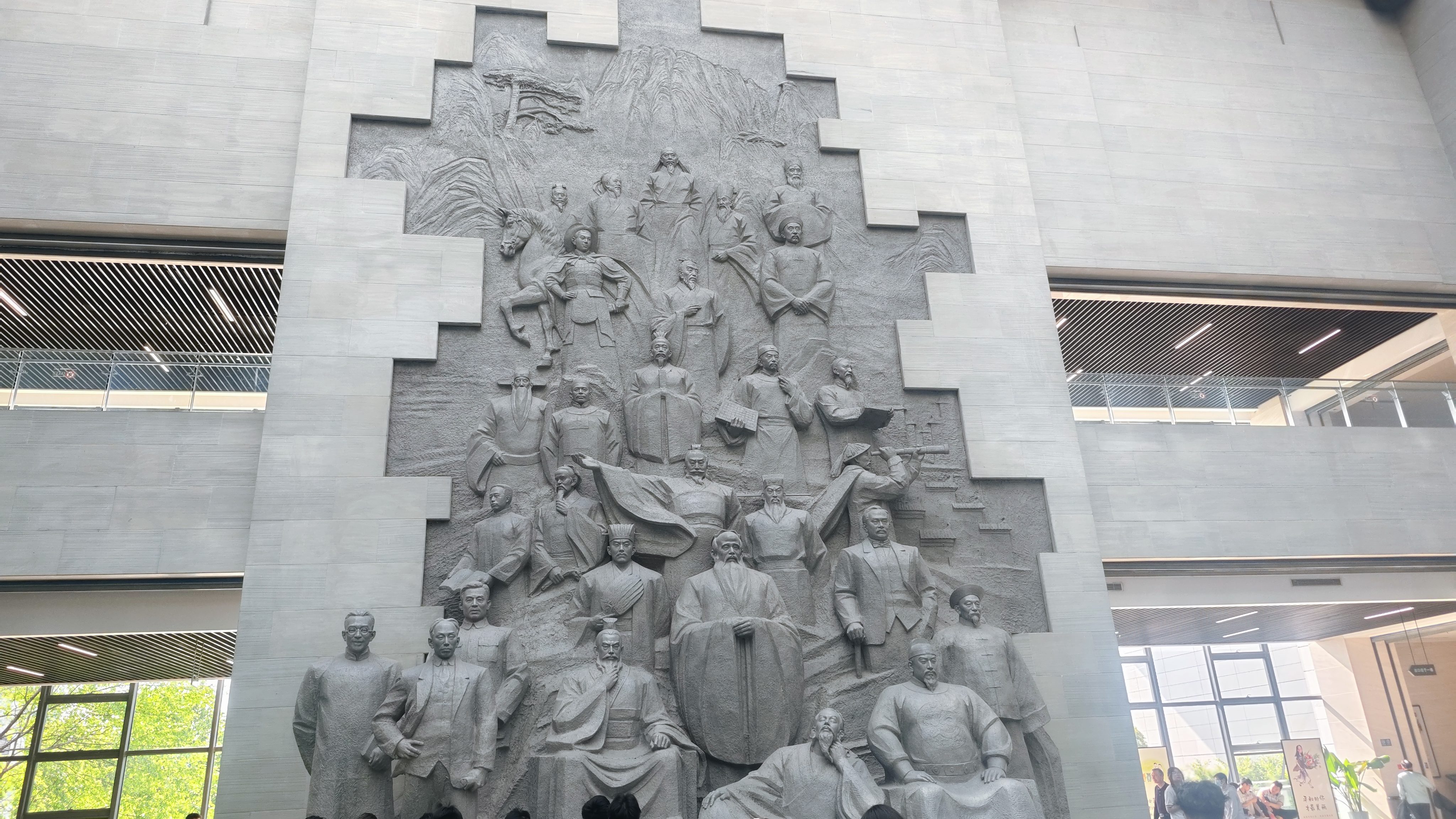 踏入名人馆,气势恢宏的巨型浮雕墙率先抓住众人目光。浮雕上,姜子牙、包拯、李鸿章等安徽历史名人栩栩如生,精湛的雕刻技艺将他们的神韵展现得淋漓尽致,无声诉说着安徽从古至今的辉煌历史,瞬间点燃了同学们对安徽历史文化的浓厚兴趣。在团总支书记毛炜的引导下,同学们有序穿梭于八大展厅之间,开启了一场跨越千年的历史对话。