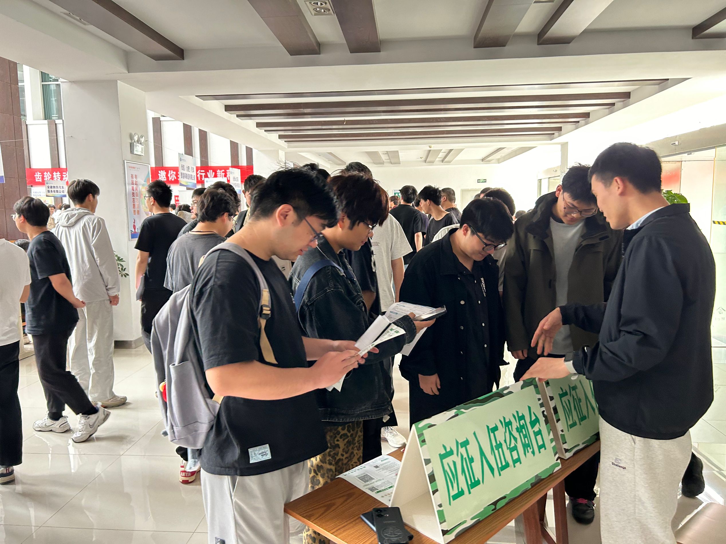 活动现场,通过设置咨询台、摆放宣传展板、发放宣传资料等多种形式,向同学们详细介绍了征兵政策、入伍条件、报名流程以及参军入伍的优惠政策等内容。学院还邀请了退伍复学的学生代表分享他们的军旅生活。他们用亲身经历讲述了在部队的成长与收获,让同学们对军营生活有了更直观、更深入的了解。这些生动的故事激发了同学们对军营的向往和参军报国的决心。