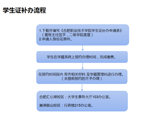 1、填写《合肥职业技术学院学生证补办申请表》一份