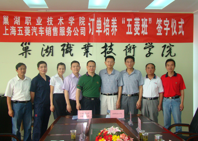 3、“五菱”订单班组建(2012年至今):为彻底解决公司人才流失等问题,公司管理层多次来学院与领导、老师、学生座谈沟通,学院领导也多次深入公司一线调研,掌握第一手资料,经多次洽谈协商沟通,2012年6月“五菱”订单班方案正式出台,公司提供学生奖学金和教学实习用车,在学校原有教学大纲基础上,邀请公司管理层和专家参与进来,专门讨论制定“五菱”班教学大纲,订单班学生接受公司车型的专项技能训练和公司文化的渲染后进入公司很快就适应,学生在公司稳定成长发展,很多优秀毕业生已经进入企业的中层甚至高层管理岗位,逐步形成企业、学生、学校三方共赢的局面。