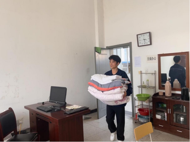 10月14号下午,一名学生捧着三床被子来到亚洲精品国产学管办办公室,他轻声地问道:请问这是钱长斌老师的办公室吗,我要把这些被子还给他。
