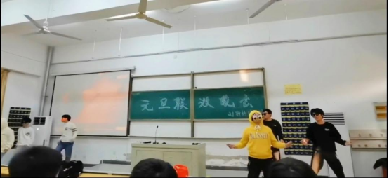 此次晚会在《新宝岛》的精彩舞蹈和同学们热情的欢呼中拉开了帷幕。晚会演出节目形式多样、激情荡漾。有合唱曲目《夜空中最亮的星》《成都》《老男孩》;拳击表演《哨兵反袭击》;双人舞蹈《Bomba》等等。晚会节目气氛热烈,处处洋溢着青春活力。当然,还有欢乐的互动环节——《你来比划我来猜》和《听歌识曲》。同学们积极参与,在纪念品的诱惑加持下,现场的欢呼声一次又一次将晚会推向高潮。最后,晚会在全体同学齐唱《北京东路的日子》的歌声中落下帷幕。